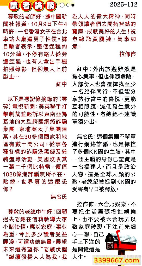 主题 :112期:彩民推荐〖貼信讀者論壇〗 |