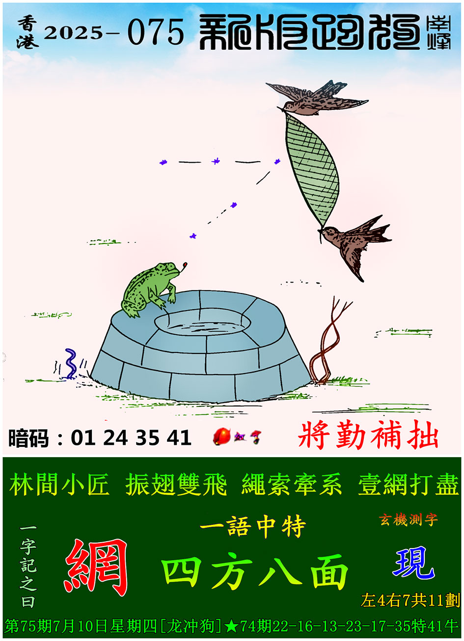 | 主题 :075期:新版跑狗一字記之曰【網】 玄機測字:【現】 |