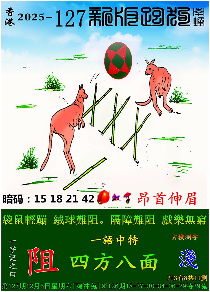 | 主题 :127期:新版跑狗一字記之曰【阻】 玄機測字:【淺】 |